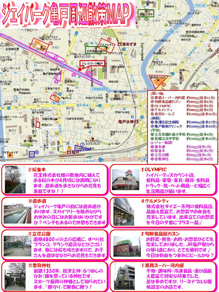 部屋からスカイツリーが楽しめるジェイパーク亀戸周辺地図